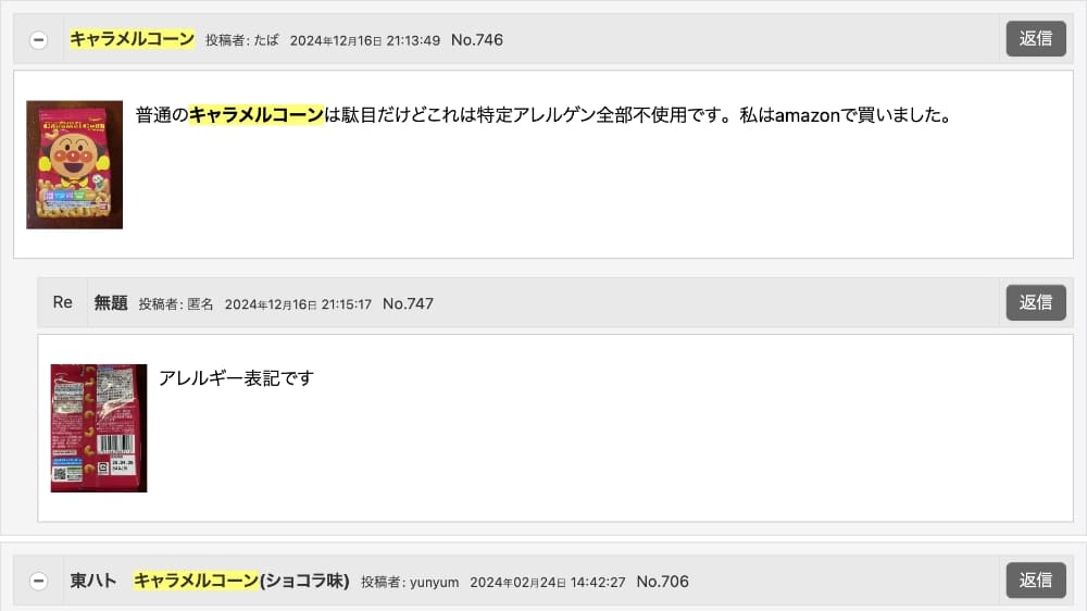 トントンの掲示板で卵乳ナッツ不使用のキャラメルコーンの投稿があり、衝撃!