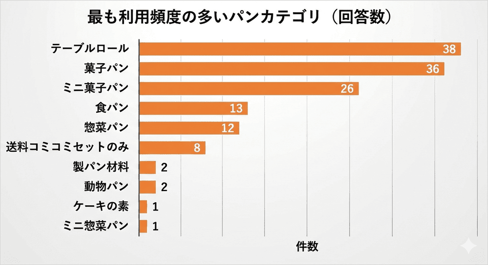 食事系(テーブルロール)とおやつ系(菓子パン)が拮抗。