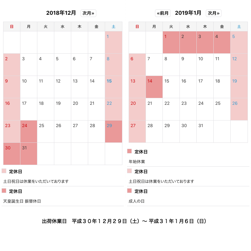 年末発送をご希望の方は、12月24日(月)までにご注文いただけると確実です。