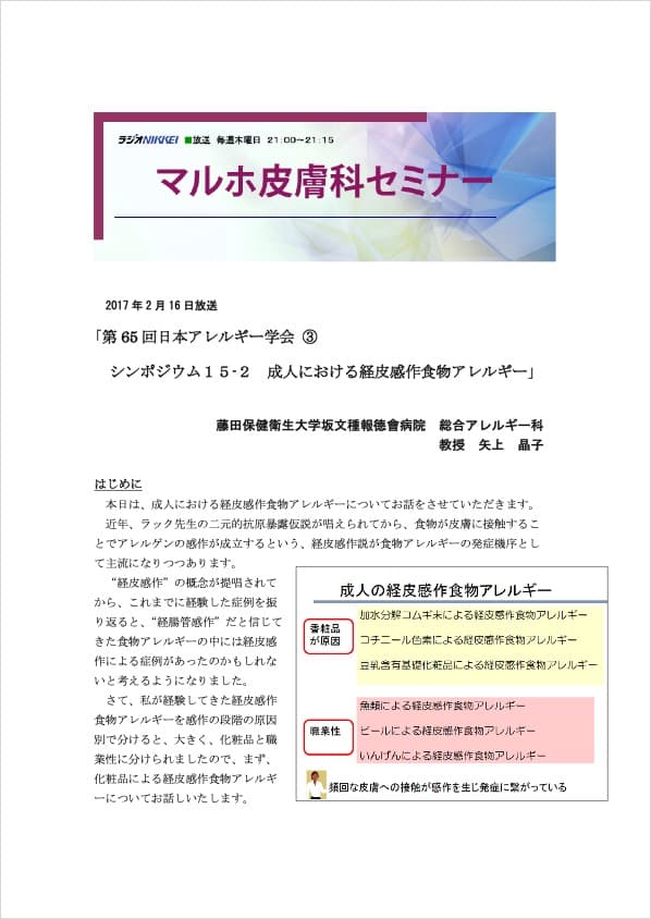 マルホ皮膚科セミナー 成人における経皮感作食物アレルギー